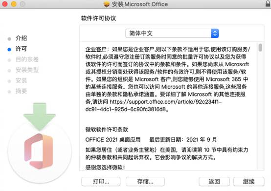 2.在第一个安装屏幕上,选择“继续”以开始安装过程。